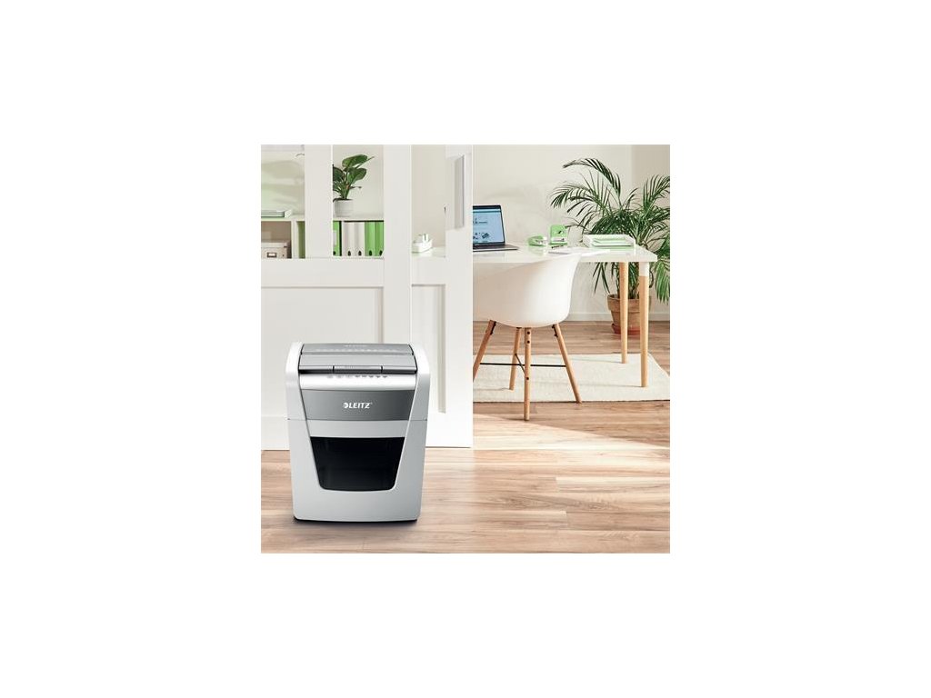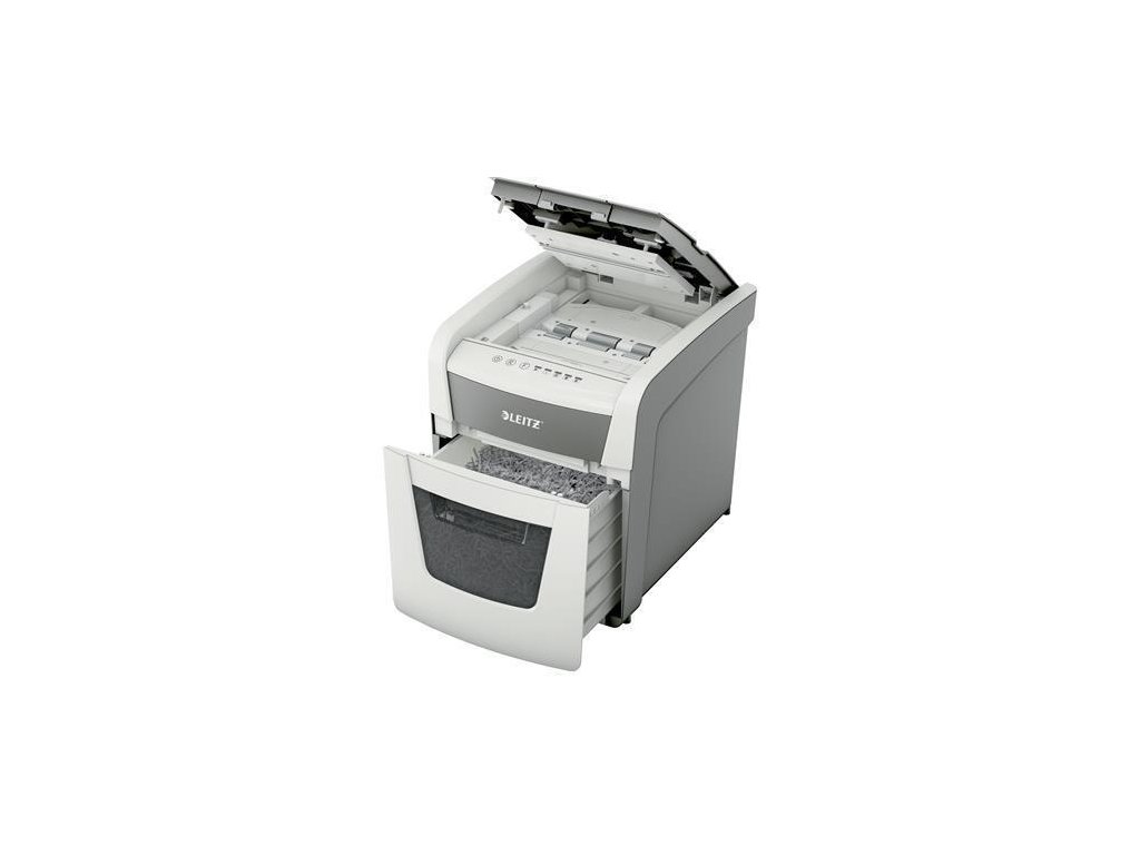 Funkce: technologie proti zaseknutí papíru (automaticky se zastaví a spustí zpětný chod); velkokapacitní odpadní nádoba; skartuje papír, svorky, sponky na papír; dotykové ovládání; mimořádně+ tichý provoz (při dodržování údržby pomocí olejových listů LEITZ).