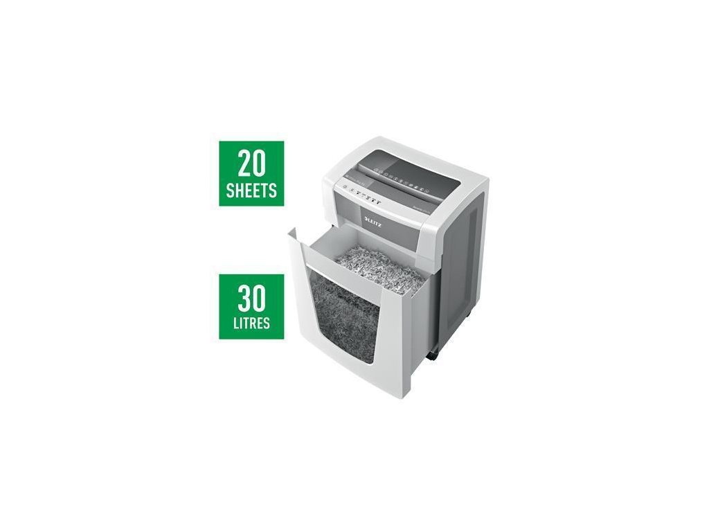 Skartovací stroj, který naráz pojme až 20 listů (80g/m2). Vhodná pro pracovní použití.Funkce: technologie proti zaseknutí papíru (automaticky se zastaví a spustí zpětný chod); velkokapacitní odpadní nádoba; skartuje papír, svorky, sponky na papír; dotykové ovládání; mimořádně tichý provoz (při dodržování udržby pomocí olejových listů LEITZ); mobilní (s pohyblivými kolečky);