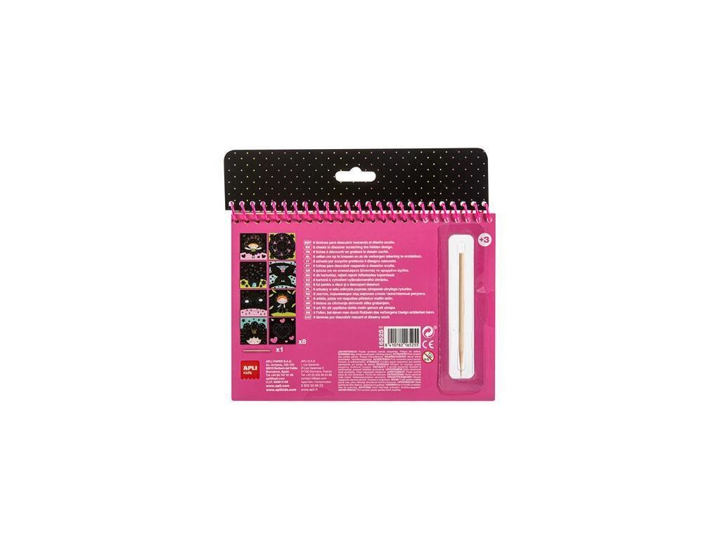 Snadné a zábavné!Seškrábáním vrchní vrstvy dřevěnou škrabkou odkryjete barevný obrázek s pohádkovým motivem
