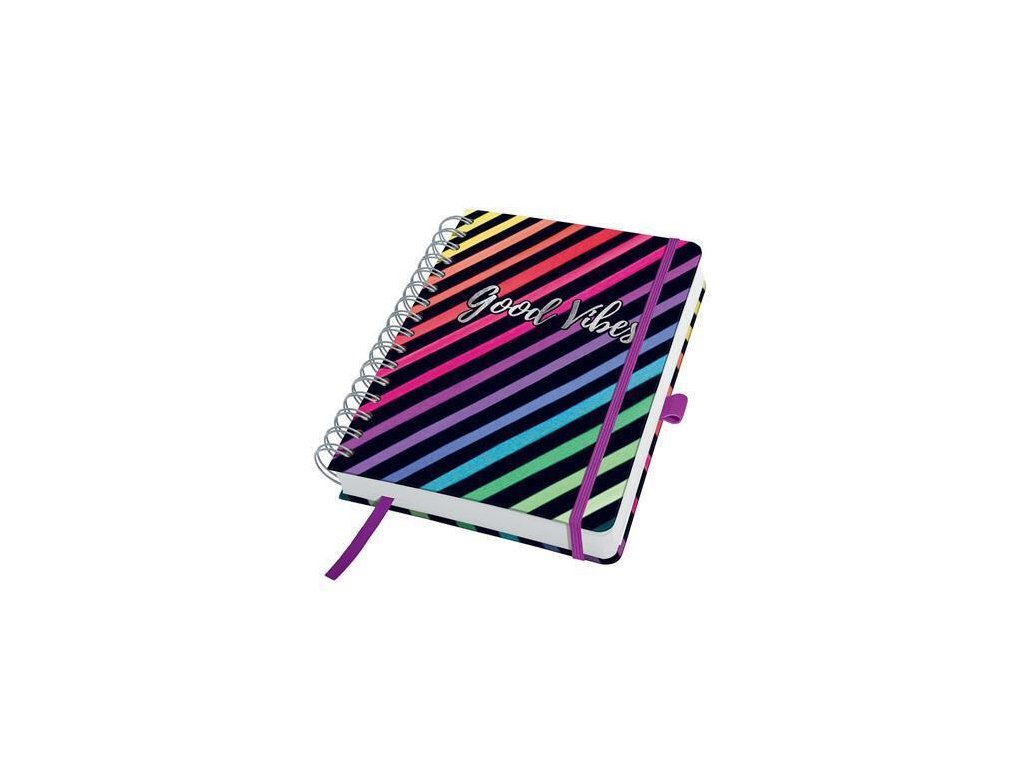 Spirálový sešit "Jolie", Good Vibes, černá, A5, tečkovaný, 120 listů, tvrdé desky, SIGEL JN651