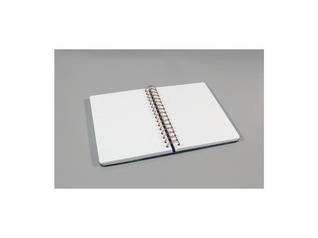 Spirálový sešit s mikro perforovanými listy a kapsou na zadní straně. Sešit má tvrdé, matné desky s lesklými detaily.Vazba: kroužková