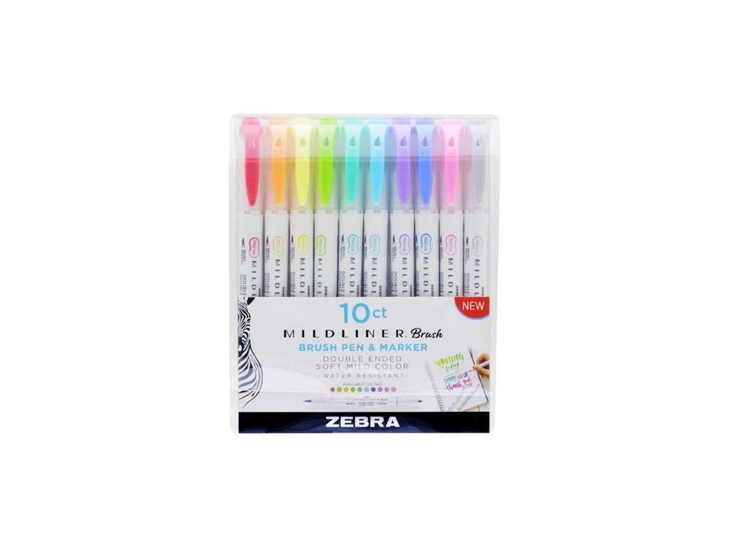 Štětcové fixy "Mildliner Brush & Marker", 10 barev, oboustranný, ZEBRA 79101