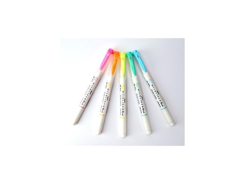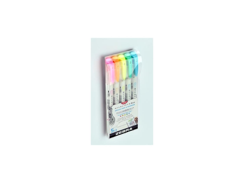 Štětcové fixy "Mildliner Fluorescent", 5 barev, oboustranný, ZEBRA