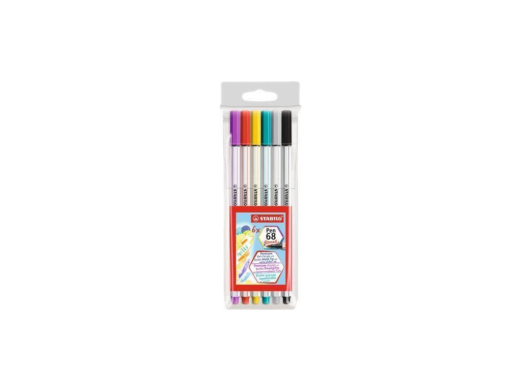 Štětcové fixy "Pen 68 brush", 6 barev, STABILO