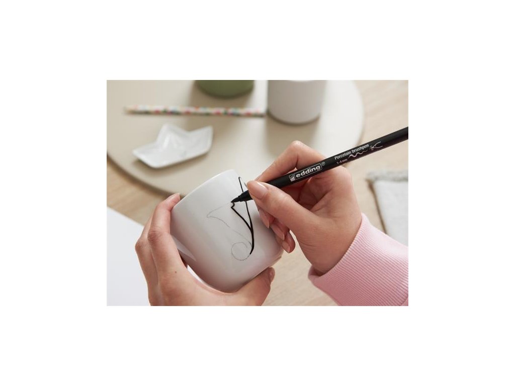 Štětcový popisovač na porcelán je vhodný k dekoraci porcelánu, keramiky a žáruvzdorného skla.Pigmentový inkoust na vodní bázi je rychleschnoucí, ale lze jej setřít vlhkým hadříkem a barvu nanést znovu (před tepelným zpracováním).