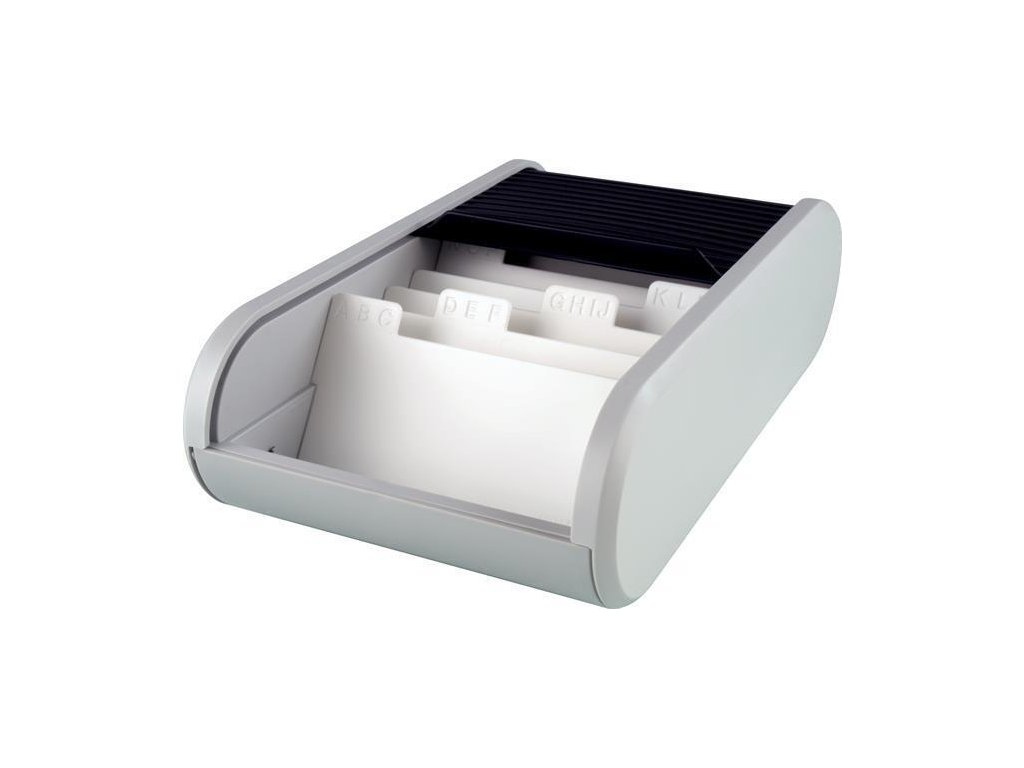 Stolní vizitkář s rolovacím zavíráním.8 popisovatelných registrů, A-Z