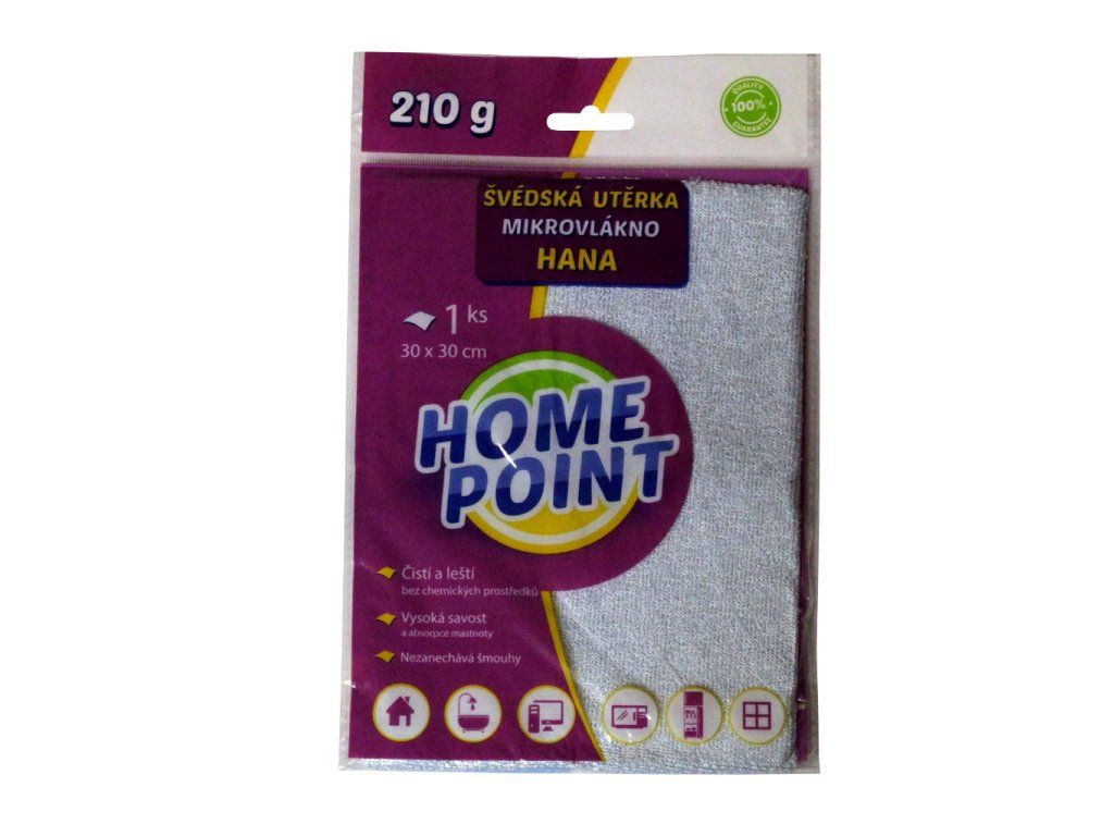 Švédská utěrka Hana (30x30 cm, 210 g) čistí a leští povrchy současně. Poskytuje jemné a šetrné čištění, nezanechává šmouhy. Má vysokou savost a absorbci mastnoty. Lze ji plně využívat bez použití chemických prostředků.