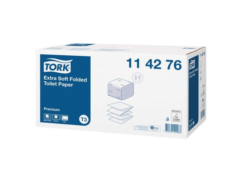Systém Tork Folded toaletní papír (T3) nabízí hygienické dávkování po jednotlivých útržcích, které omezuje plýtvání a snižuje náklady na údržbu. Tork Folded extra jemný toaletní papír v kvalitě Premium nabízí nejen prvotřídní vzhled a pocit na dotek, ale také skvělý výkon. Tento systém je ideální pro provozovny s nízkou až střední návštěvností, zejména ve zdravotnictví a v sektoru hotelnictví, restaurací a cateringu.