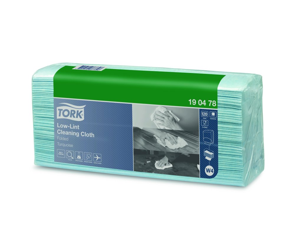 Tork Low-Lint čisticí utěrka je pevná, flexibilní a balená v ochranném přenosném plastovém balení, díky čemuž se snadno a pohodlně používá pro různé účely v oblasti čištění. Tuto utěrku lze používat v Tork stojanu na podlahu určeném na skládané utěrky, který je vymyšlen tak, aby zaručoval bezpečnost, účinnost a spolehlivost díky snadnému plnění