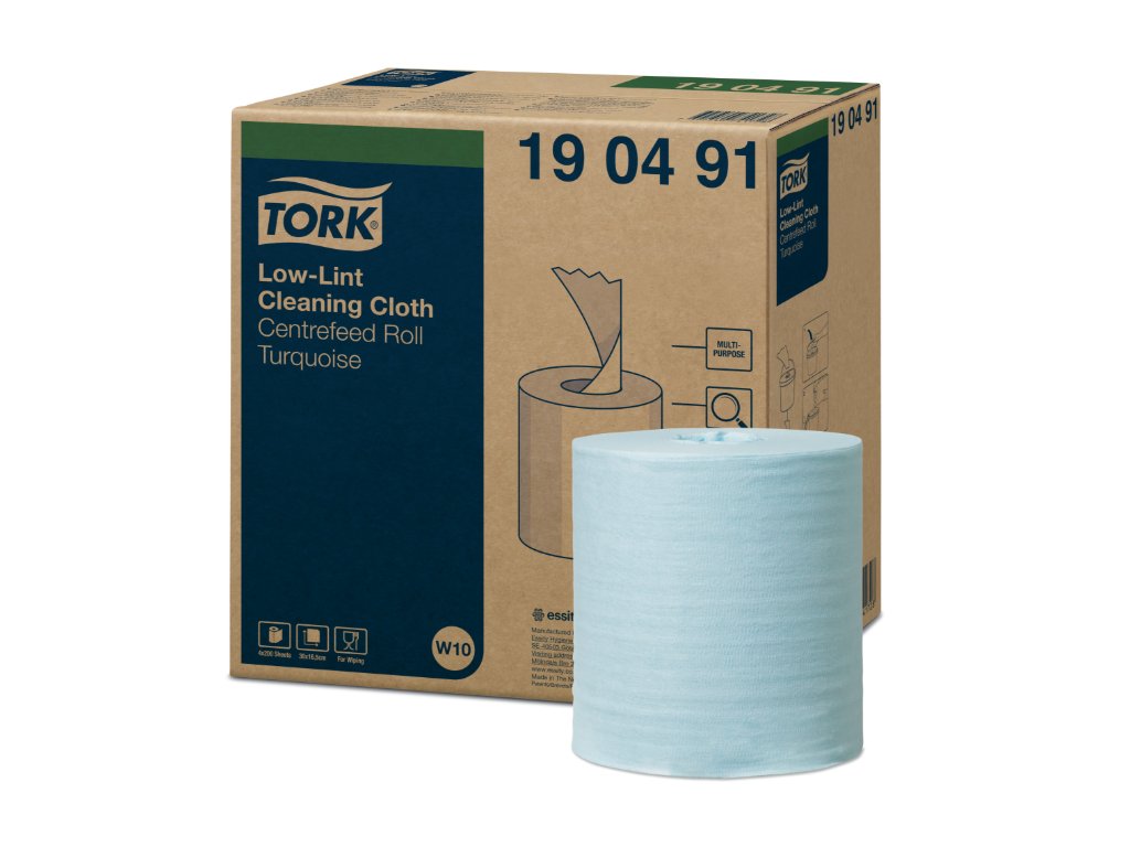 Tork Low-Lint čisticí utěrka je pevná a flexibilní. Utěrky se dodávají jako náhradní náplň do kbelíku, který vám nabízí možnost připravit si své vlastní vlhčené utěrky pomocí chemikálií, které potřebujete. Umožňuje dávkování po jednom útržku a víčko pro snadné otevírání chrání utěrky před vysycháním.