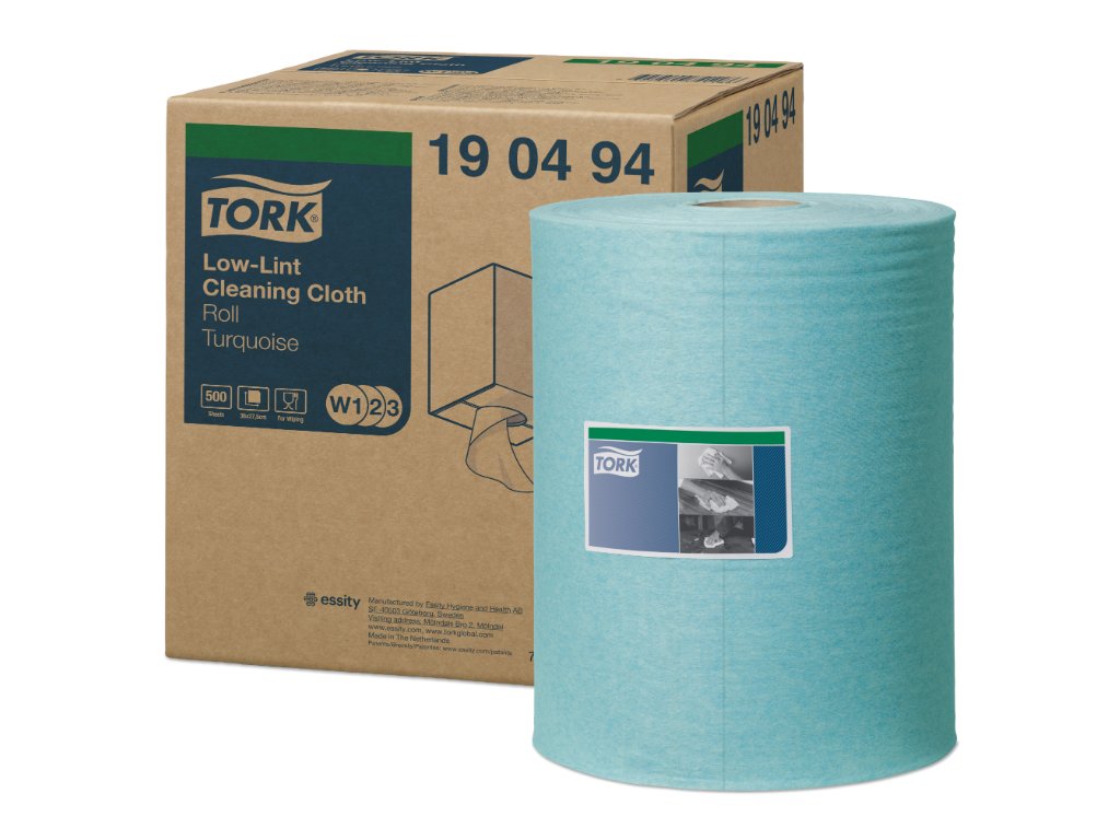 Tork Low-Lint čisticí utěrka je pevná a flexibilní. Role je zabalena v ochranné kartonové krabici a lze ji používat buď v Tork stojanech na podlahu, nebo v nástěnných zásobnících, které jsou vymyšleny tak, aby zaručovaly bezpečnost, účinnost a spolehlivost díky snadnému plnění, funkcím odtrhávání a možnosti odebrat si potřebnou utěrku jen jednou rukou. Kompatibilní se systémy W1, W2, W3