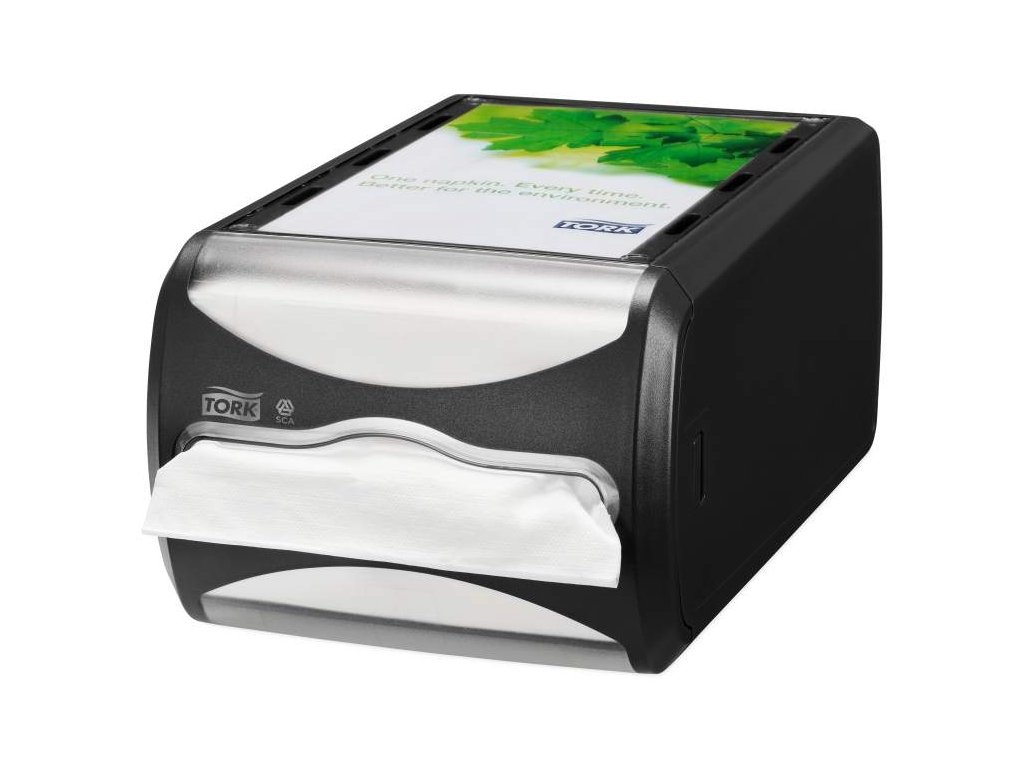 Tork Xpressnap® pultový zásobník na ubrousky je ideální pro restaurace s omezenou obsluhou, které nabízejí ubrousky na jednom centrálním místě. Tento moderní zásobník dávkuje ubrousky po jednom, zvyšuje hygienu a v porovnání s tradičními systémy dávkování ubrousků ze zásobníků snižuje spotřebu minimálně o 25 %.