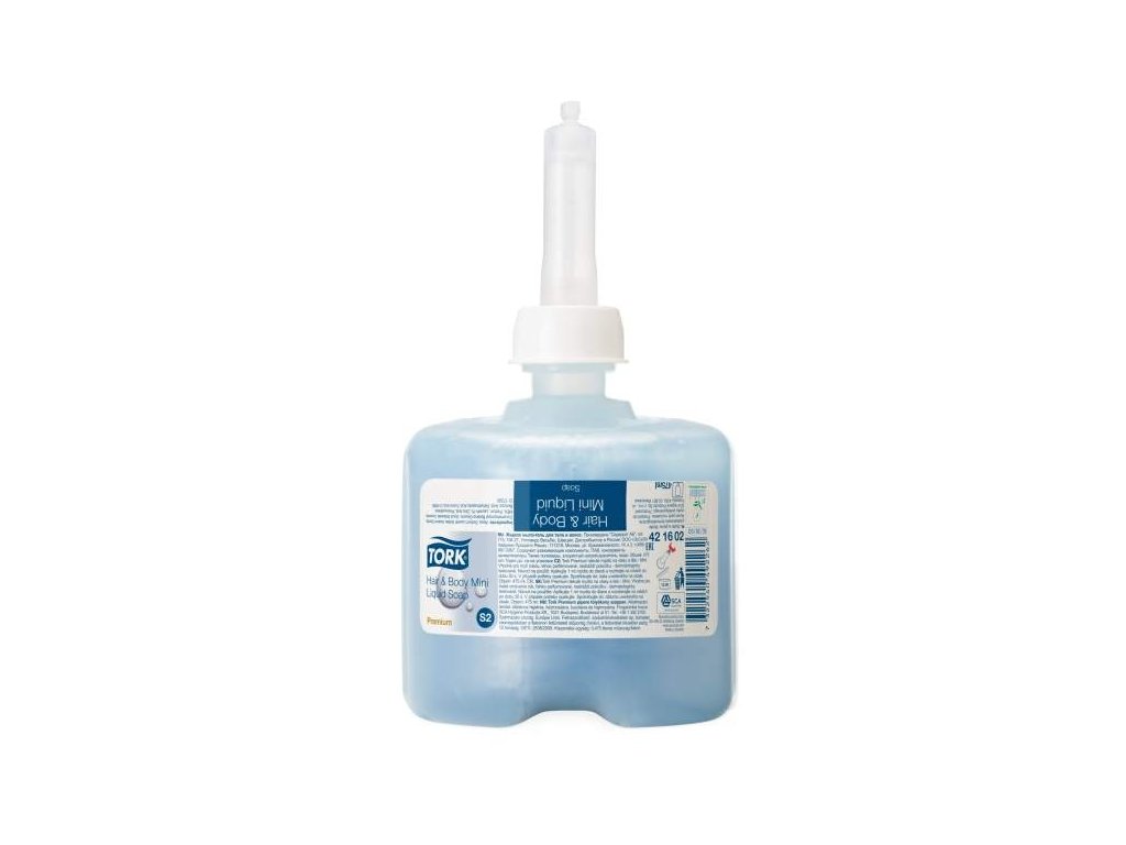 Tork Mini tekuté mýdlo na vlasy a tělo nabízí hotelům, školám a sportovním klubům praktický sprchový gel a šampon v jednom. Jeho jemné složky se svěží unisex vůní zanechávají pokožku a vlasy krásně hebké. Vhodný do Tork zásobníků na tekuté mýdlo, které se snadno používají a nabízejí všem uživatelům dokonalou hygienu rukou.