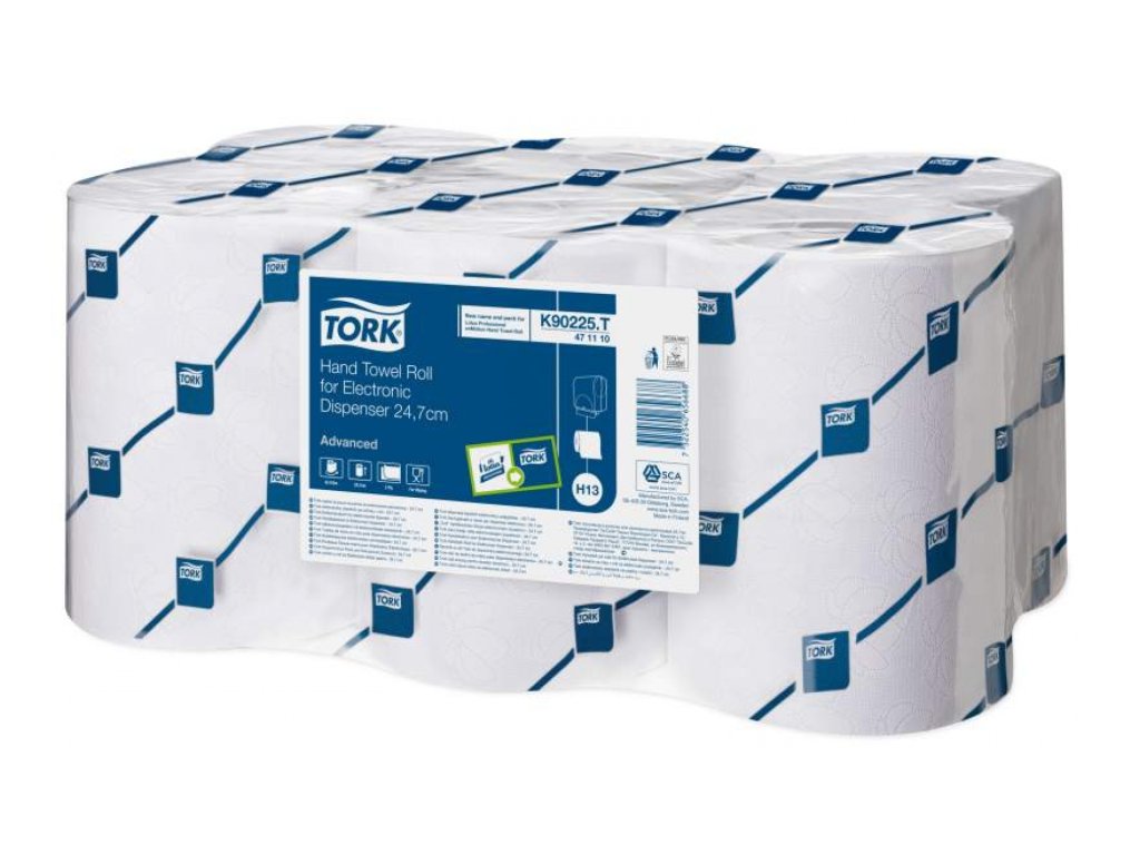 Systém Tork papírové ručníky v roli pro elektronický zásobník (H13) má vysokou kapacitu, která je ideální pro frekventované toalety a umývárny, které naleznete v místech jako jsou školy a letiště.