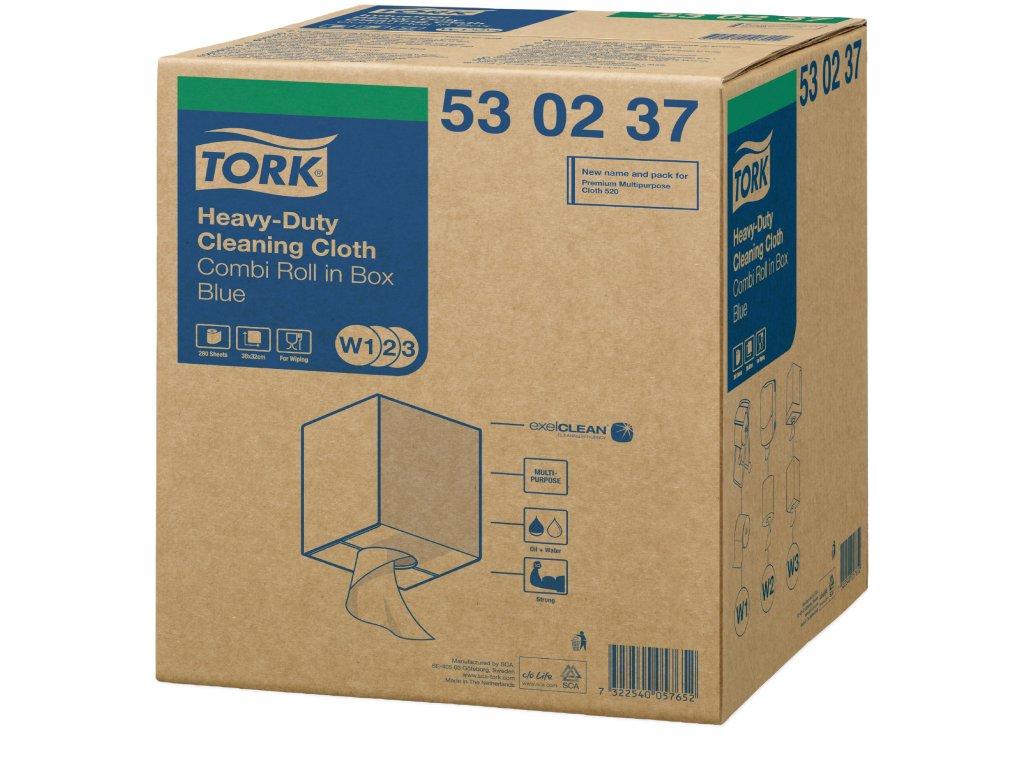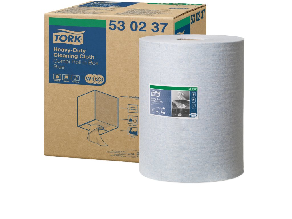 Víceúčelová Tork Heavy-Duty čisticí utěrka je vysoce absorpční, pevná a velmi trvanlivá, vydrží hrubé drhnutí, aniž by se roztrhla. Funguje v kombinaci s většinou rozpouštědel a rychle a účinně odstraňuje olej, mastnotu, vodu a nepoddajné skvrny a chrání přitom ruce před horkem a kovovými úlomky. Tuto utěrku lze používat v Tork stojanech na podlahu či nástěnných zásobnících, které jsou navržené tak, aby zaručovaly bezpečnost a účinnost, a v Tork Maxi zásobníku na role se středovým odvíjením či zásobníku na kombi role v boxu, které jsou navrženy pro dávkování jednou rukou. Kompatibilní se systémy W1 / W2 / W3