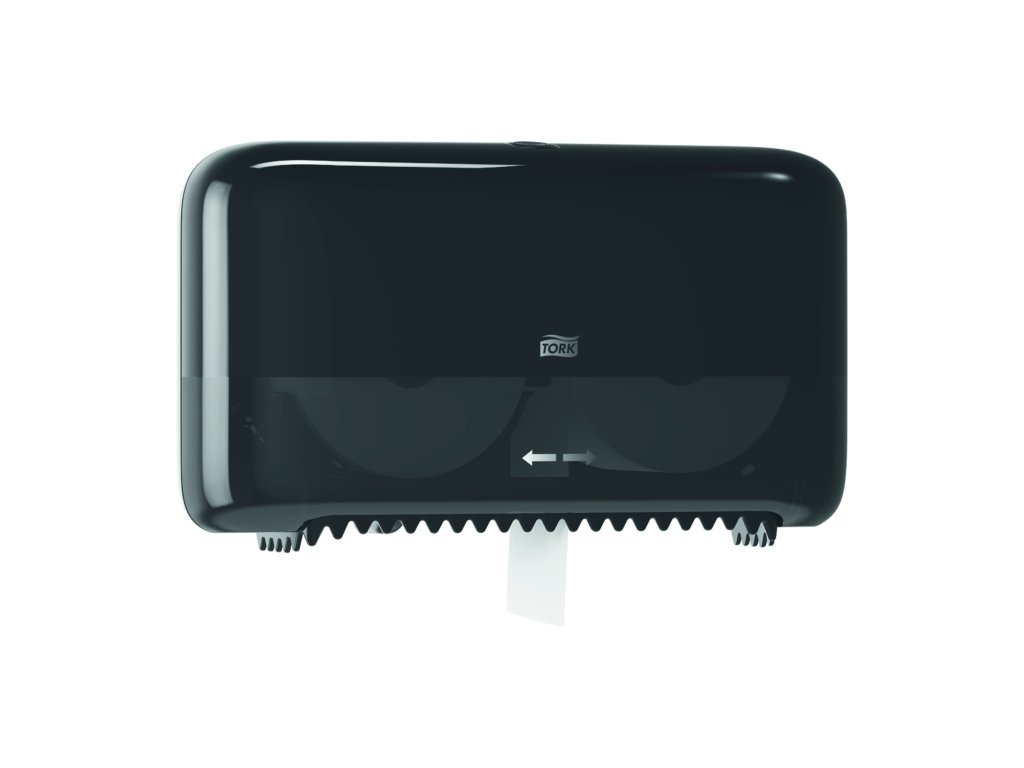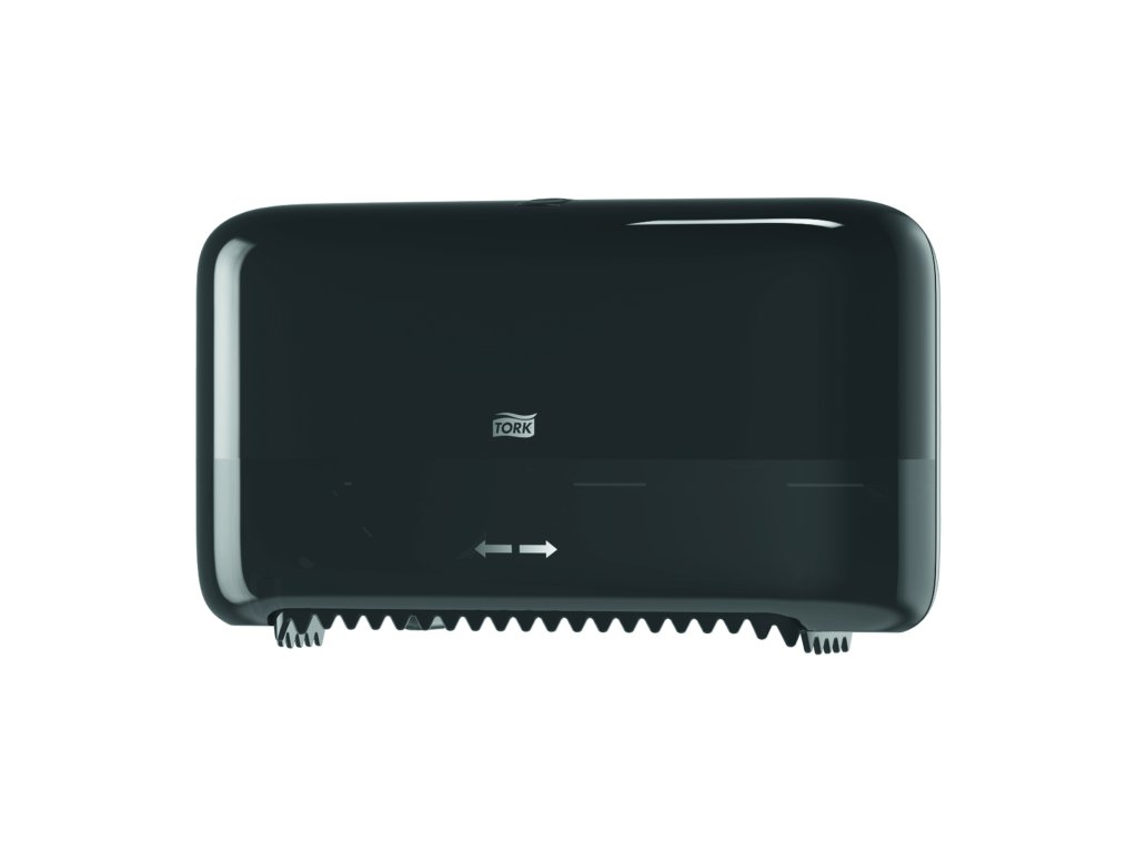 Tork Twin Mid-Size zásobník na bezdutinkový toaletní papír je ideální pro toalety a umývárny s nízkou až střední návštěvností, kde cílem je především spokojenost hostů. Nabízí vysokou efektivitu a zaručuje, že hosté mají toaletní papír vždy k dispozici, neboť pojme až devětkrát více papíru než dvě konvenční role toaletního papíru.
