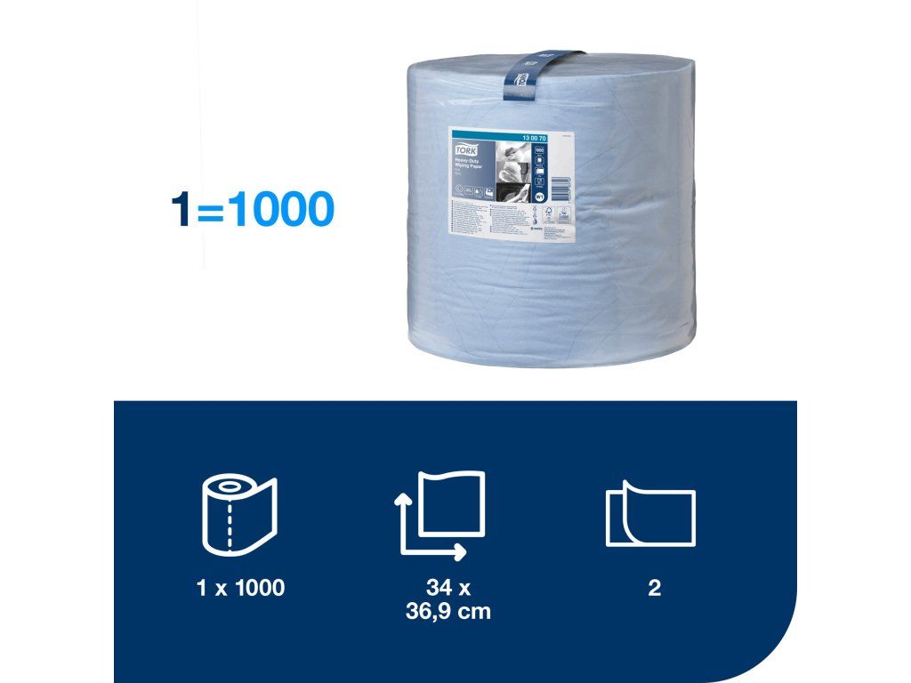TORK - Heavy-duty papírová utěrka v roli, 1 x 340 m, 2 vrst., modrá, 36,9 x 34 cm