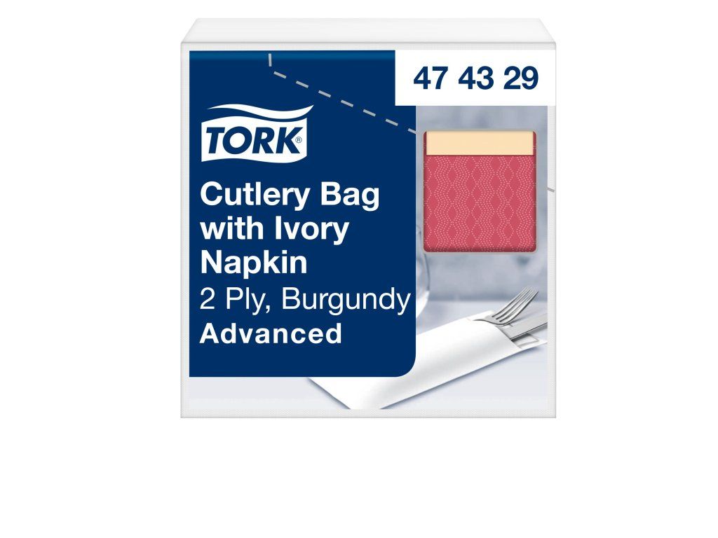 TORK - Kapsička na příbory s ubrouskem, 5 x 100 ks, 2 vrst., burgundy / sl. kost