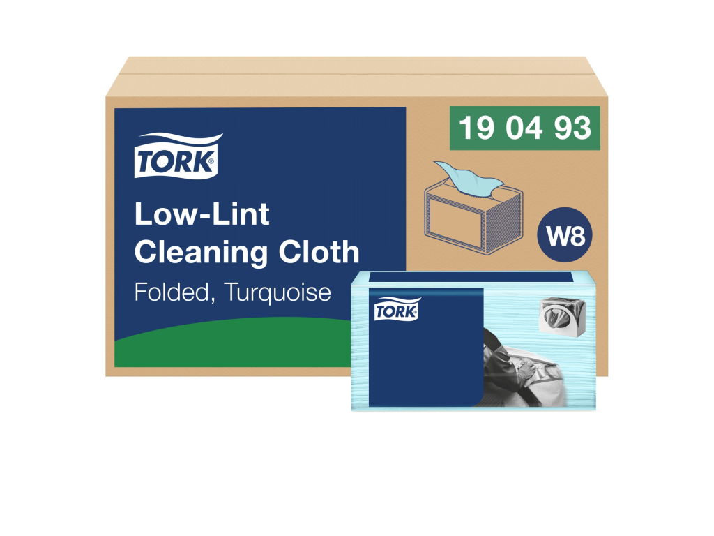 Tork Low-Lint čisticí utěrka je silná, flexibilní a zabalená v malém ochranném přenosném plastovém obalu. Utěrky lze používat v Tok zásobníku na Small Pack W8, který je vymyšlen tak, aby zaručoval bezpečnost, účinnost a spolehlivost díky snadnému plnění, funkcím dávkování po jednom útržku a možnosti odebrat si potřebnou utěrku jen jednou rukou.