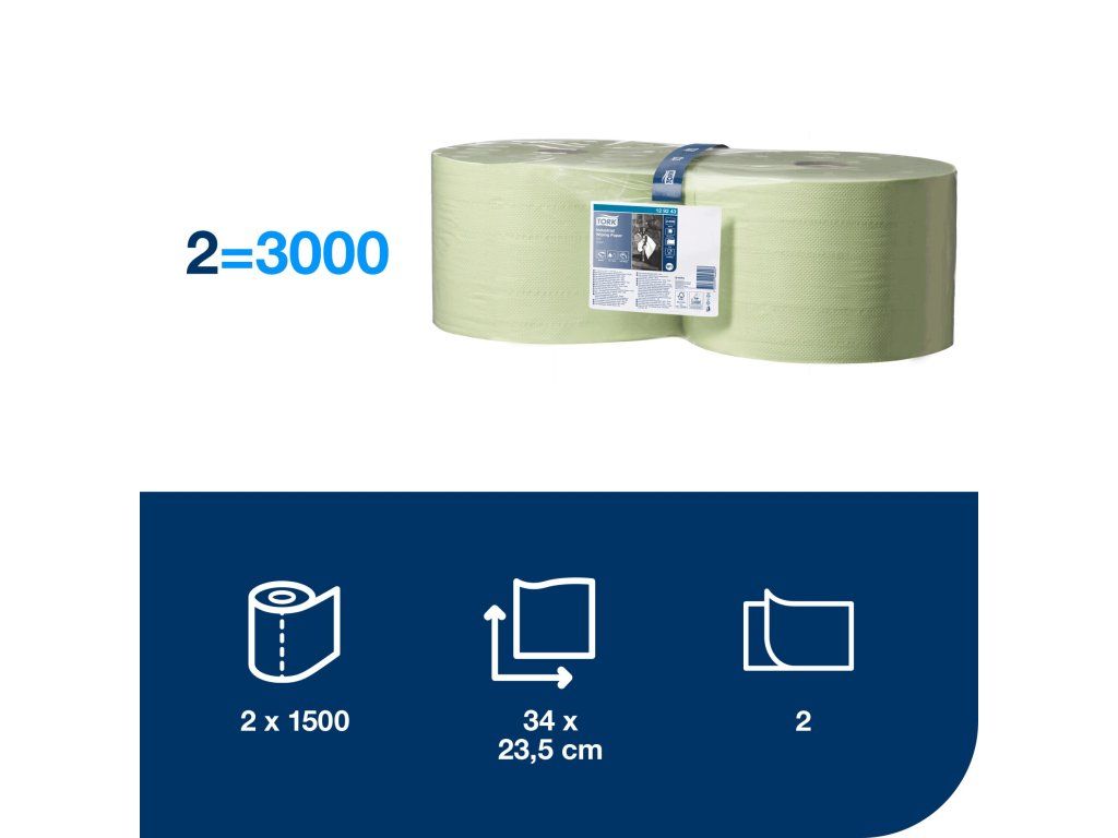 TORK - Průmyslová papírová utěrka v roli, 2 x 510 m, 2 vrst., zelená, 23,5 x 34 cm