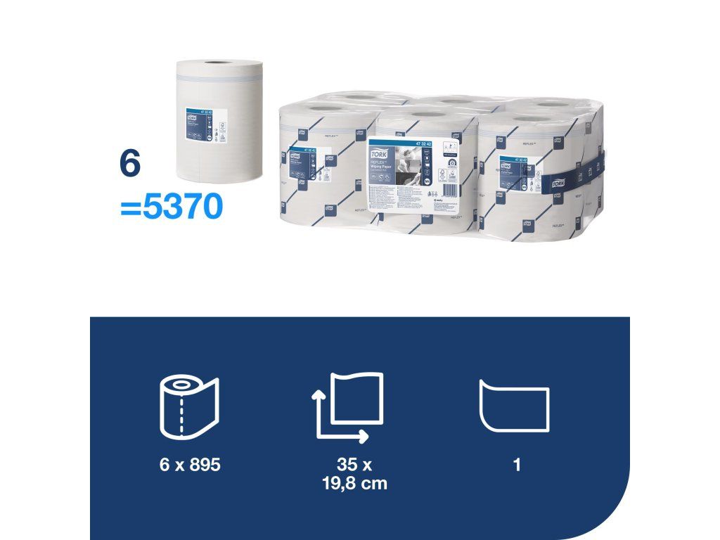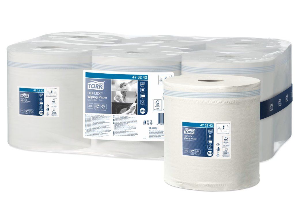 1vrstvá víceúčelová Tork Reflex™ papírová utěrka je díky své pevnosti a vysoké absorpci ideální pro úkoly v oblasti utírání i pro utírání rukou. Tuto papírovou utěrku lze používat v Tork Reflex™ zásobníku na role se středovým odvíjením s dávkováním po jednom útržku M4, který se přizpůsobí pracovním tokům vašeho týmu, snižuje spotřebu a minimalizuje riziko křížové kontaminace.
