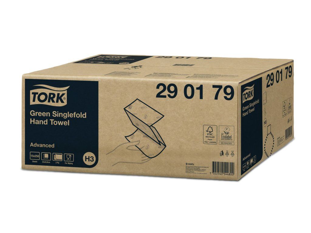 TORK SINGLEFOLD - Skládané ručníky, 15 x 250 ks, 2 vrst., zelená, 25 x 23 cm, V sklad