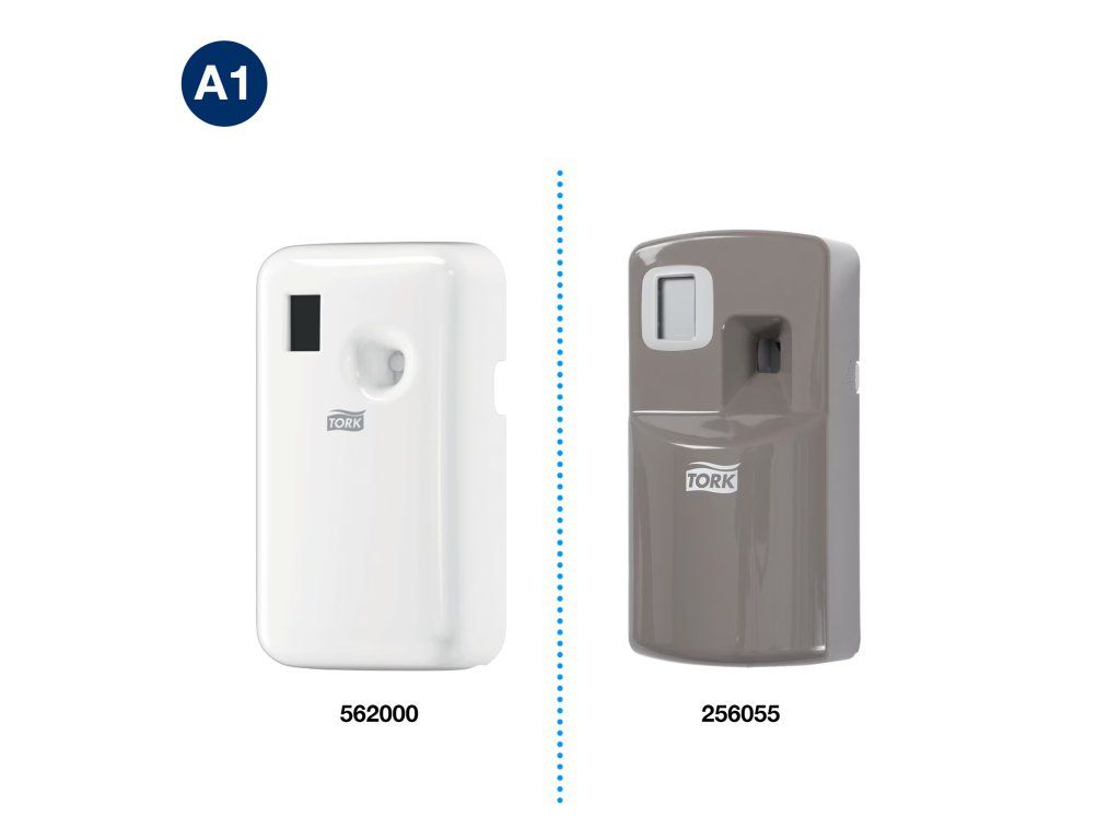 Spreje jsou vhodné pro Tork osvěžovač vzduchu A1, který umožňuje flexibilní nastavení pro celou řadu toalet a umýváren.