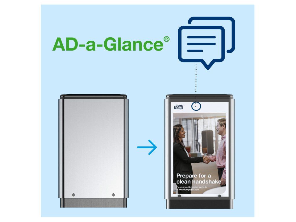Panel AD-A-Glance® pro hygienický stojan Tork je komunikační nástroj, který podporuje zlepšení hygieny v kancelářích a dalších veřejných prostorách.