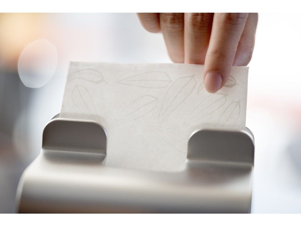 Tento elegantní zásobník vyrobený z hliníku dávkuje ubrousky po jednom, zvyšuje hygienu a v porovnání s tradičními zásobníky na ubrousky snižuje spotřebu minimálně o 25 %.