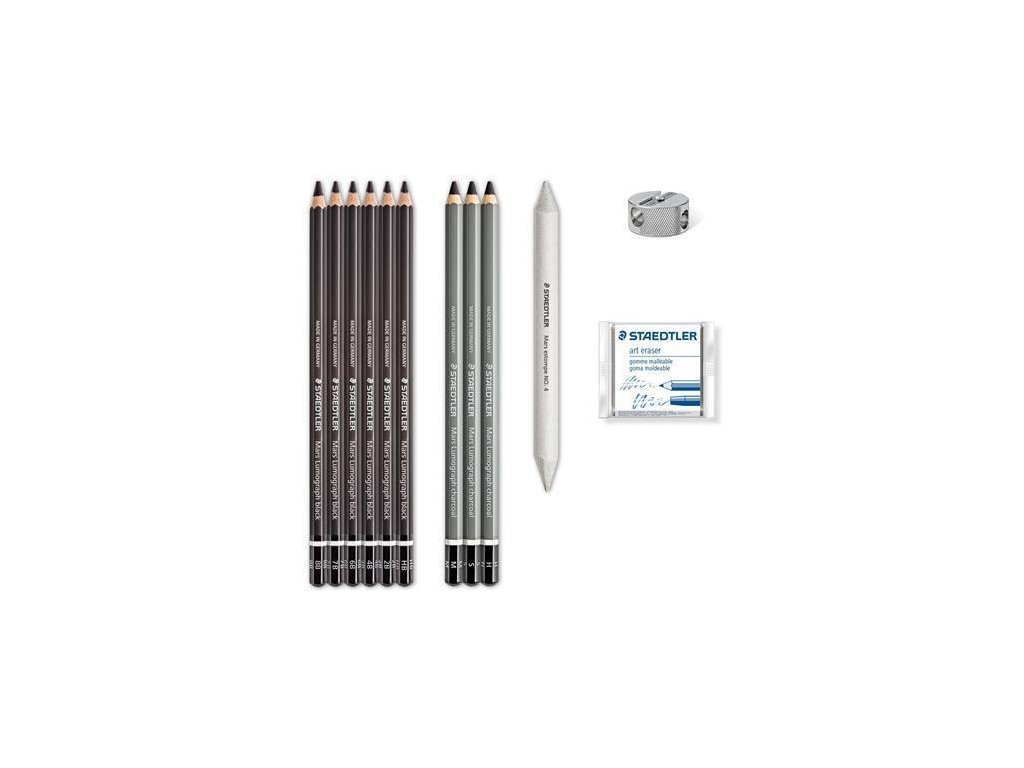 Uhlíkové tužky "Design Journey Lumograph", sada s pryží, ořezávátkem, grafit. Tužkami, STAEDTLER