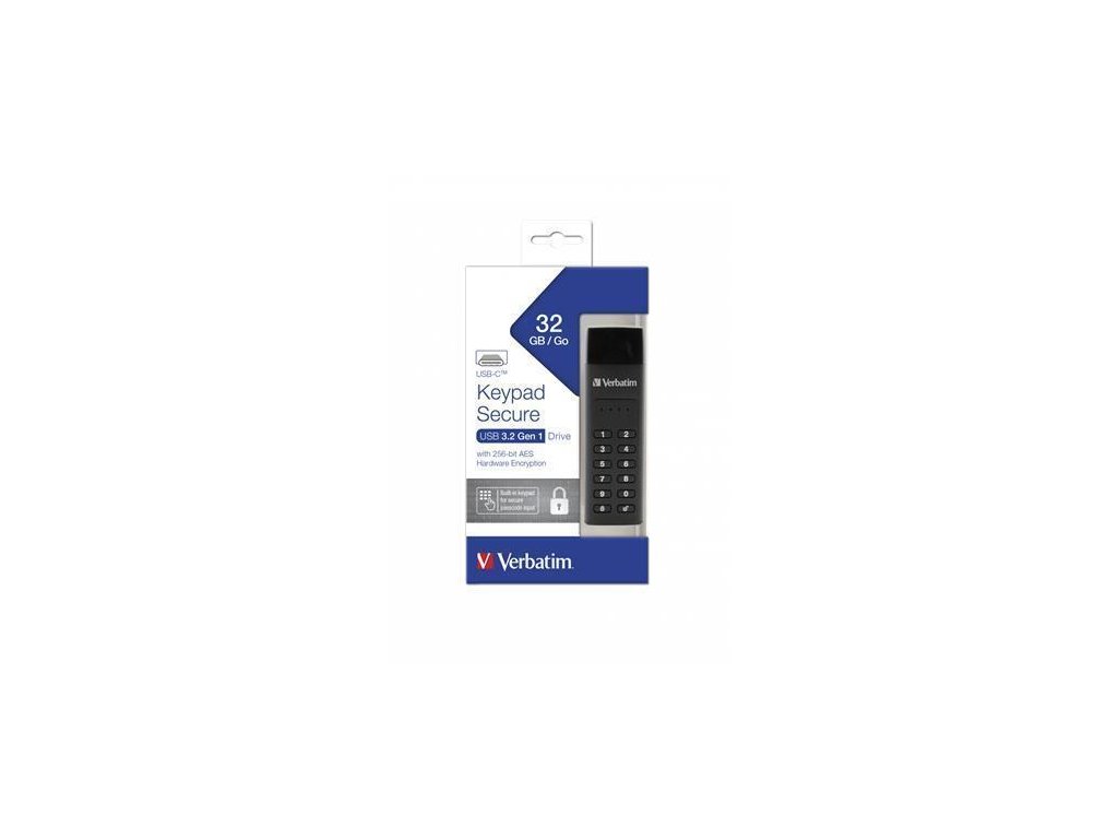 USB Flash disk "Keypad Secure", USB-C 3.1 GEN1, 32GB, šifrovaný heslem, 160/130Mb/s, VERBATIM