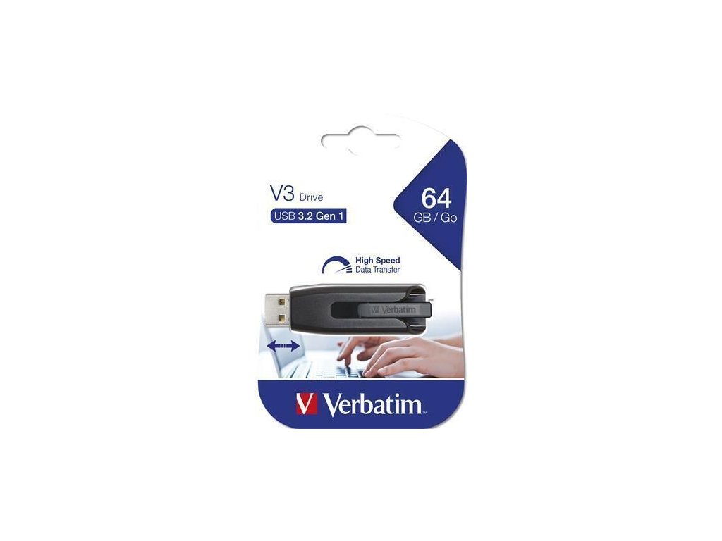 USB flash disk "V3", černá-šedá, 64GB, USB 3.0, 60/12MB/sec, VERBATIM