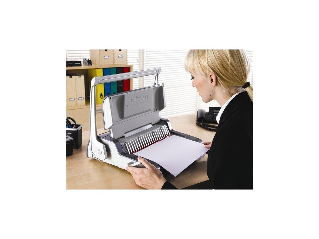 Děrovací vertikální mechanismus umožňuje nezávislé děrování a vkládání dokumentů na hřeben, zjednodušuje vázání a zrychluje čas vázání