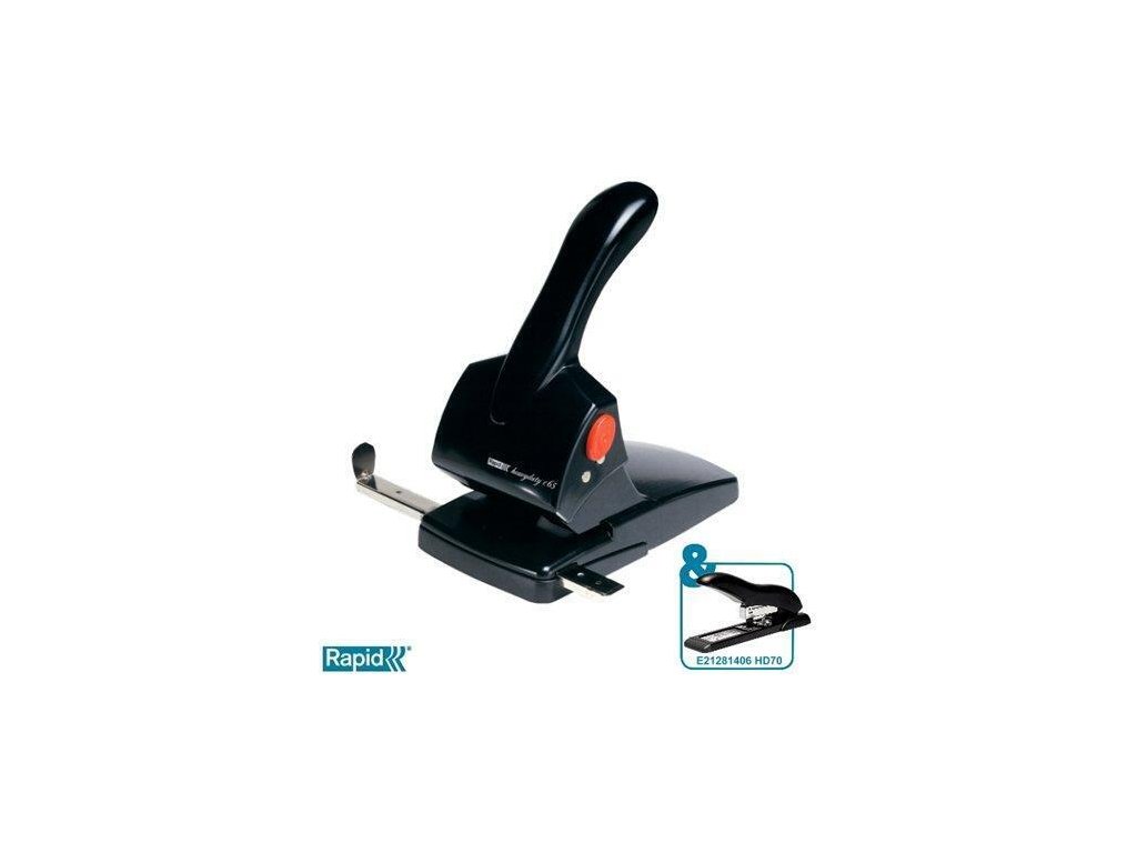 Výkonná děrovačka s ergonomicky tvarovaným ramenem z litého kovu. Vhodná do kanceláře.Kapacita děrování: 65 listů (80 g/m2)