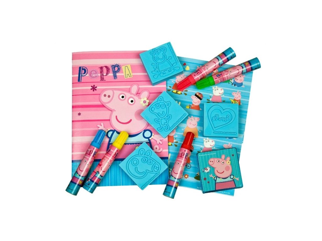 Zábavná sada razítek s motivem Peppa Pig obsahuje čtyři velká razítka, inkoustovou podložku, pět fixů, aršík se samolepkami a malířskou knihu. Děti mohou tisknout vymalovávat, tvořit a rozvíjet svoji kreativitu.Doplňkové parametry