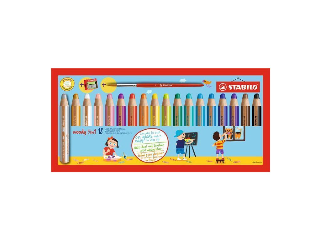 Víceúčelová pastelky "Woody", sada, 18 barev, oblé, maxi, STABILO