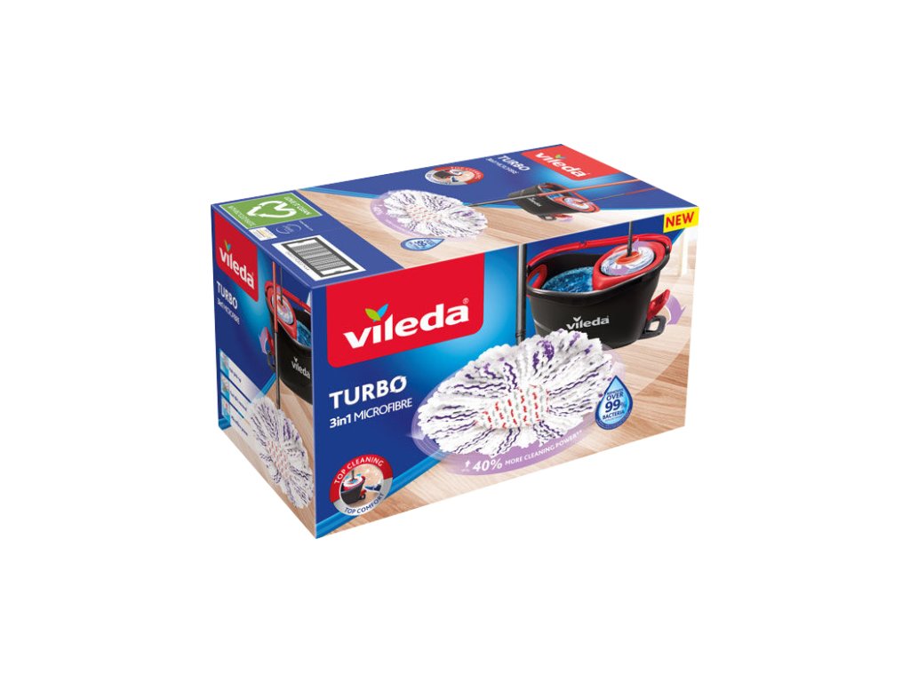 - Balení obsahuje Vileda TURBO 3v1 třásňový mop a kbelík se šlapacím pedálem.