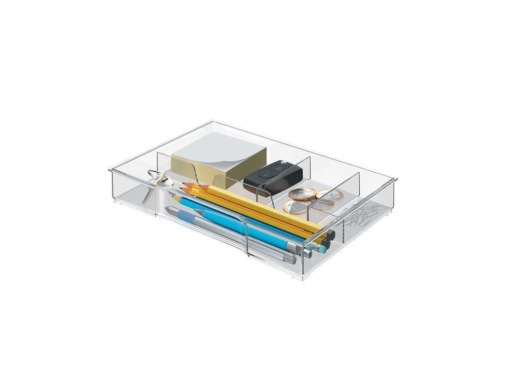 4 přihrádky pro organizaci malých předmětu, jako jsou pera, samolepící záložky, vizitky, USB disky, kancelářské spony atd.
