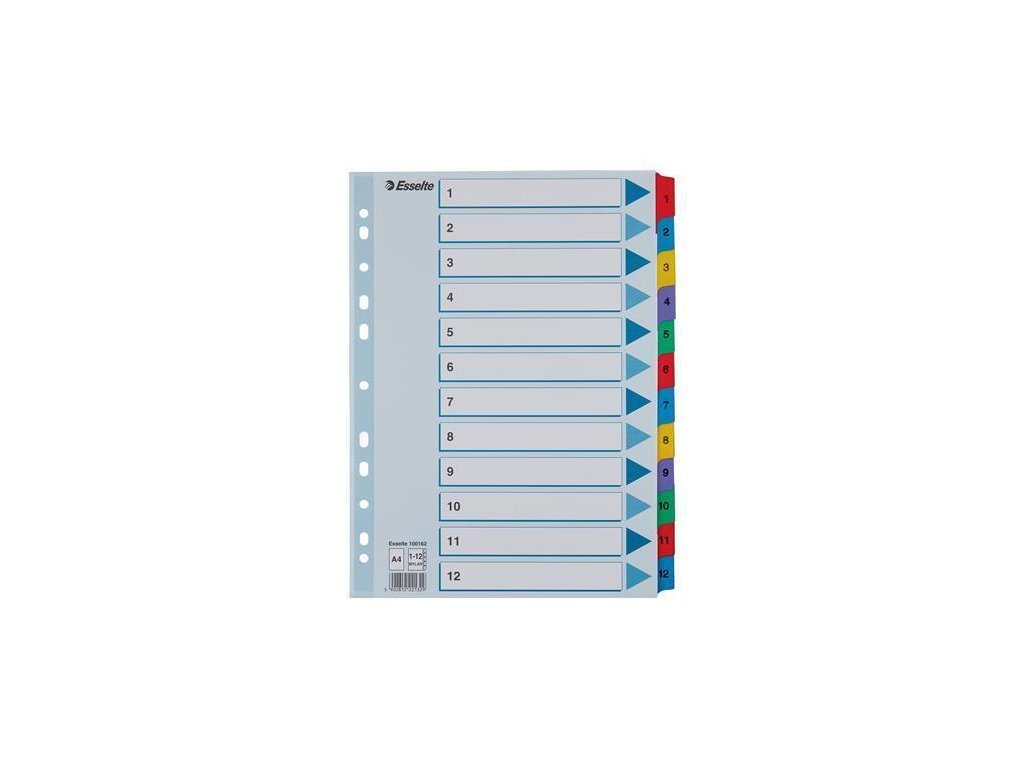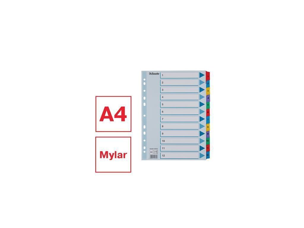 Zesílené rejstříky "Mylar", mix barev, karton, A4, 1-12, ESSELTE
